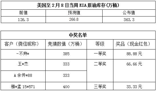 2019年2月第2期“EIA大竞猜”活动的中奖结果已出,获奖信息如下: